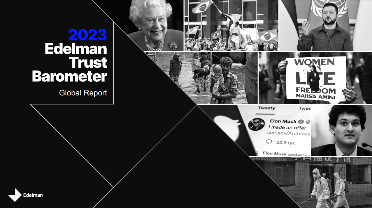 Edelman zveřejnil svůj globální report „Edelman Trust Barometer“. Důvěra lidí („moje rodina a já se budeme mít lépe za pět let“) je nejnižší za 20 let v 85% sledovaných zemích. Špatnou zprávou je i rostoucí rozdělení společnosti. Lidi ve světě vnímají vládu a média jako zdroj zavádějících informací. Naopak business a neziskovky jsou vnímané spíše jako z…