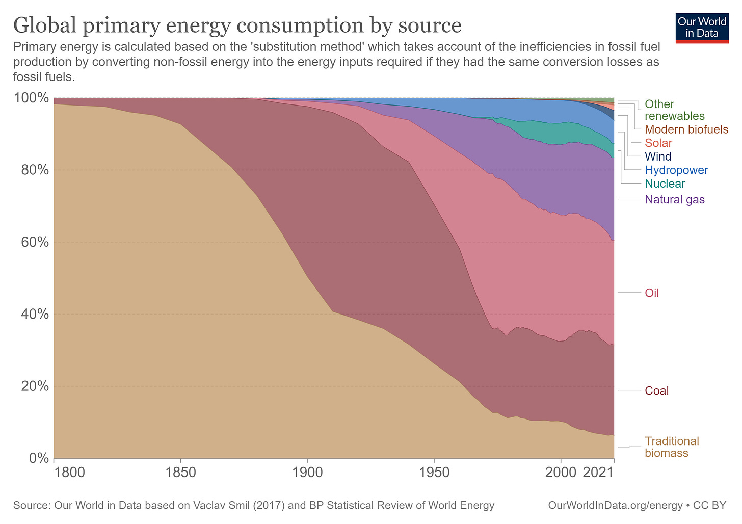 Jaderná energie se podílí 4% na celosvětové produkci energie. To není mnoho. Vrcholu produkce bylo dosaženo v roce 2004 a do roku 2012 docházelo k poklesu. Od té doby mírný nárůst. Nicméně produkci energie z jádra v nultých letech překonala energie vyrobený z hydroelektráren, nyní tento zdroj vyprodukuje o 60% více energie než jádro.